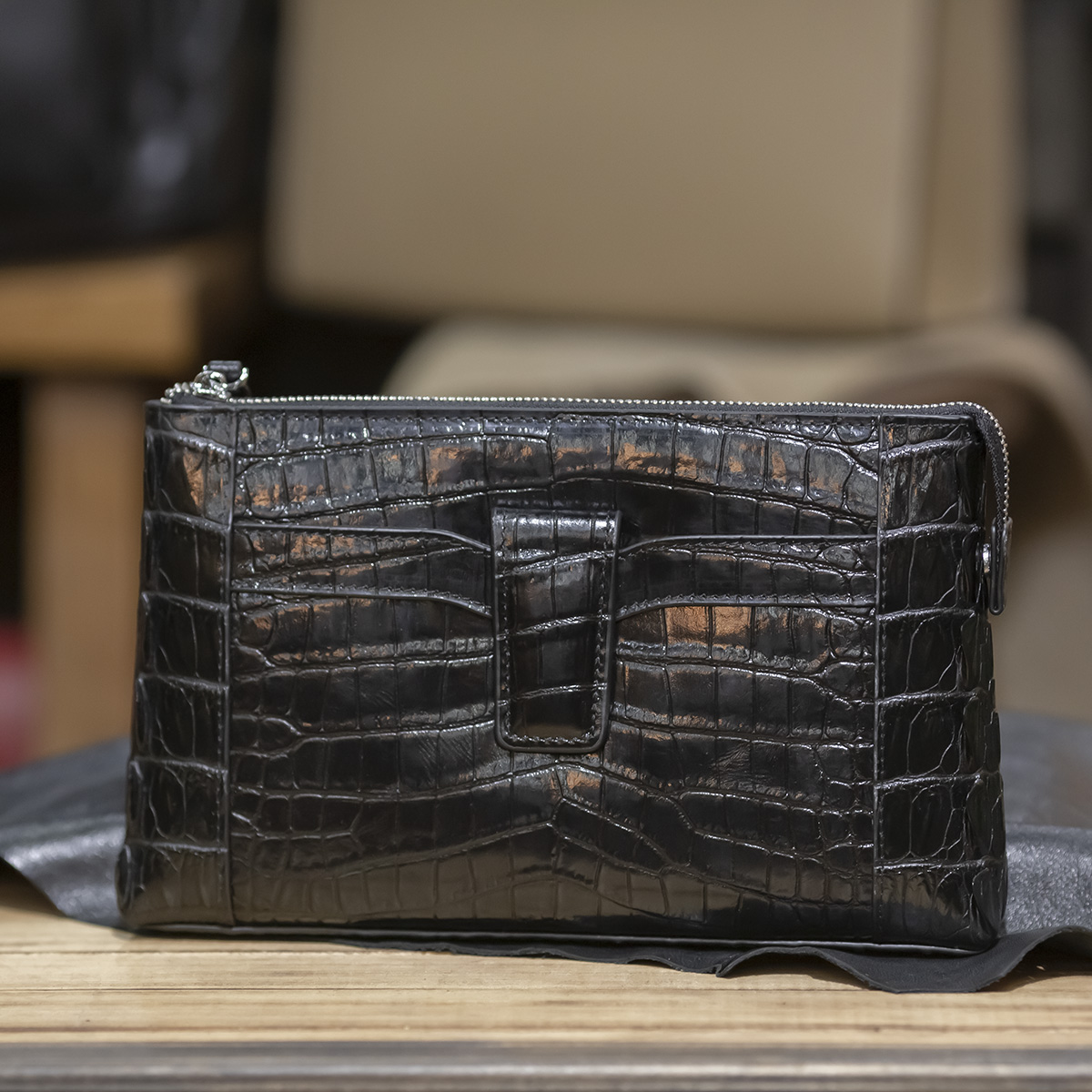 • Chất liệu: Da bò dập vân cá sấu